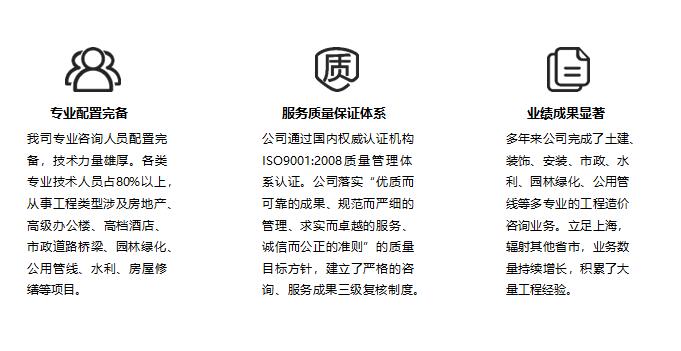 我公司在投资监理、财务监理、竣工结算审价、招投标、绩效管理、可行性研究方面具备多年项目经验与业绩。拥有专业理论扎实、实践经验丰富的资深工程师团队。