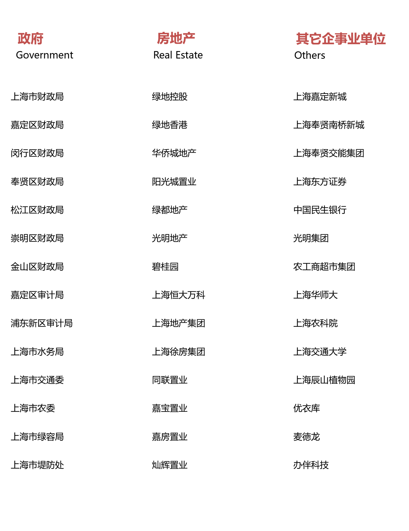 公司入围嘉定区财政局、闵行区财政局、奉贤区财政局、松江区财政局、金山区财政局、崇明区财政局财务监理服务名单,同时也是上海市水务局、上海市财政局绩效管理入围服务单位。